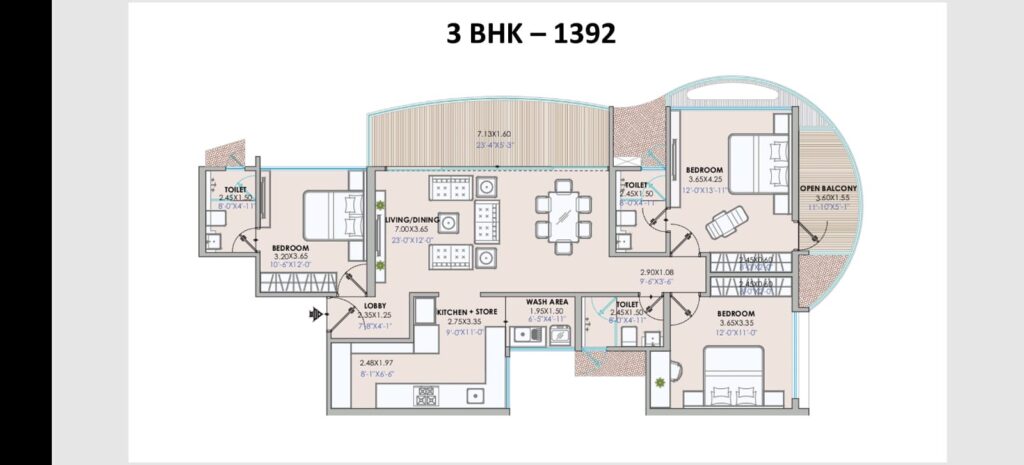 - 3BHK- 1284 SQFT & 1392 SQFT